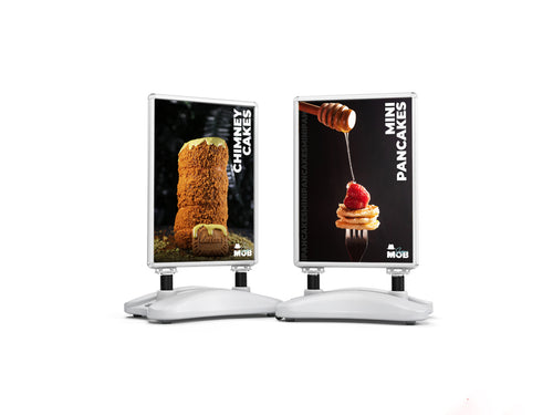 We offer roll-up banners, waterbase pavement signs and durable aluminium A-stands